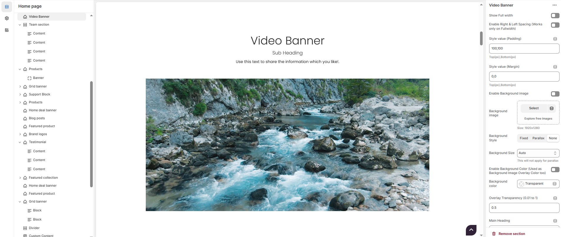 Video Banner Section Settings & Customization Options: