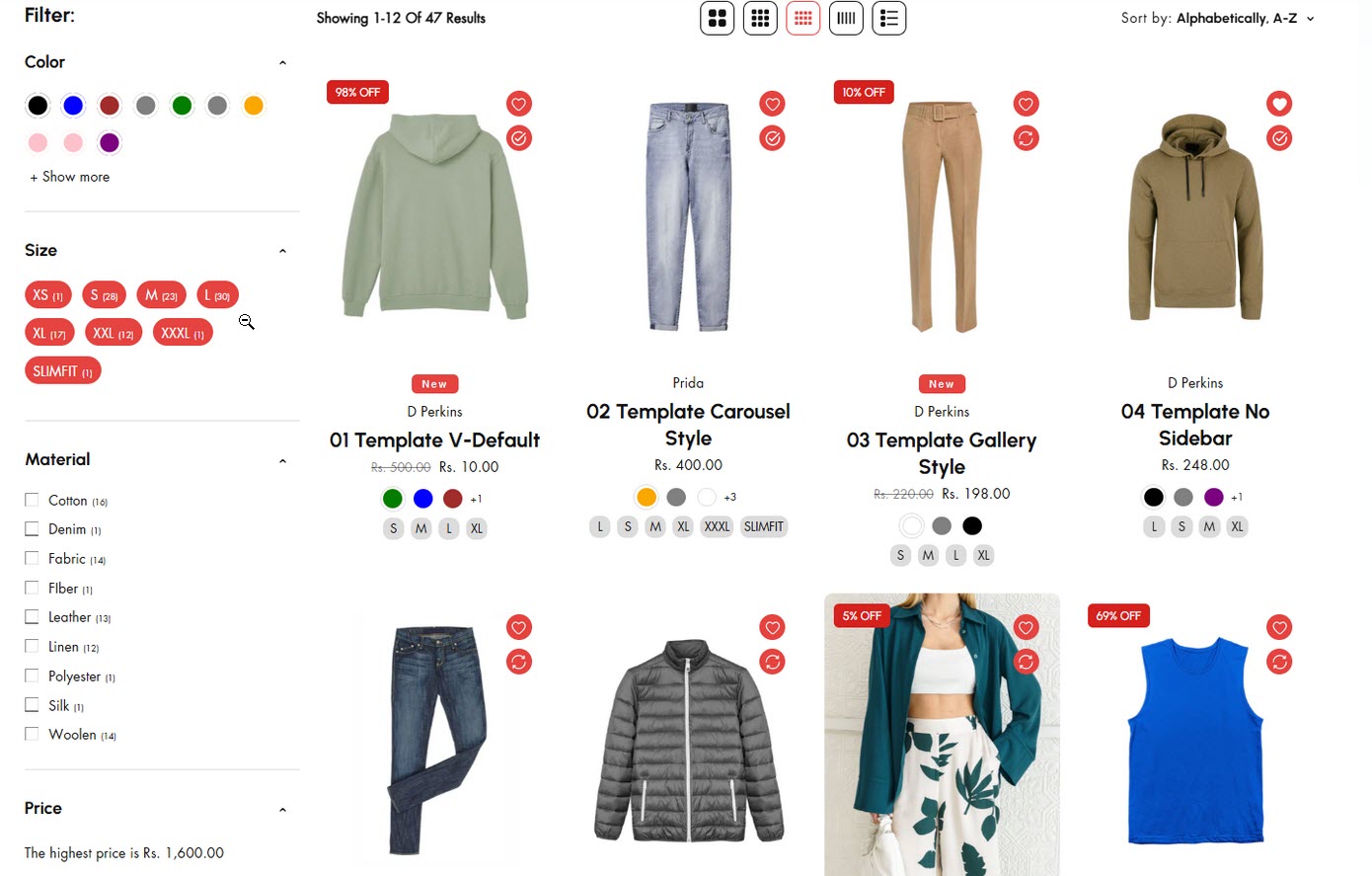 Color Filter: Helps customers filter by color options, ideal for fashion, decor, or art products.