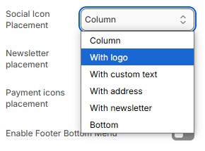 #### Important Note: You need to **Enable Social Media** and **Set Social Icon Placement** in the **Footer Settings** for the icons to appear.