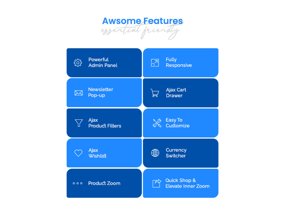 * **Great for SEO:** Uses the latest Shopify SEO features and product data is formatted for Google rich snippets, so that product listings are optimized for search engines.