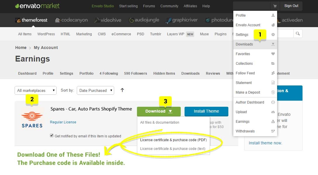 Step 1 : Sign in to your ThemeForest account and go to the 'Downloads' tab.